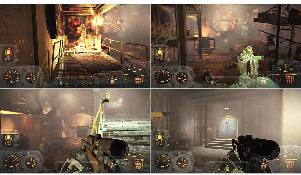 Abraham nos habló de los forjados, un grupo que cree en el fuego y el acero, al llegar a la zona muy cerca de la Granja. Cuidado porque muchos de ellos van armados con Lanzallamas y nos tiran Molotov’s, y también tenemos varios en las alturas. El francotirador nos viene perfecto, a los que lleven Lanzallamas aniquiladlos rápido o lucharemos a ciegas mientras ardemos, cuando matemos a los del exterior entramos en la siderúrgica.