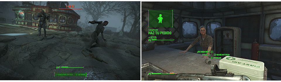 - La segunda es ponernos del lado de los Saqueadores, podemos pedirles que bajen las armas e incluso amenazarles para que nos den su dinero (44 Chapas), luego hablamos con Trudy y podemos o terminarlo con violencia o convencerla para que les pague, la decisión es nuestra.