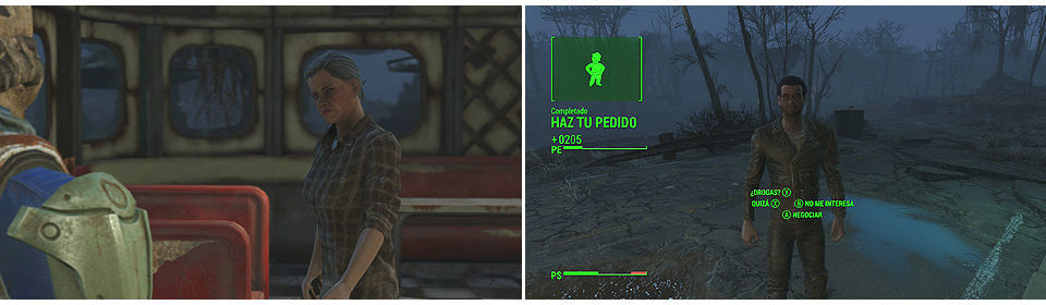 - La primera es ponernos de parte de Trudy, los Saqueadores piden el dinero de las drogas que le vendieron a su hijo Patrick, si nos decidimos a ayudarla tendremos que matar a los 2 Saqueadores Wolfgang y Simone, lo haremos muy fácilmente, luego hablamos con Trudy para recibir la recompensa.