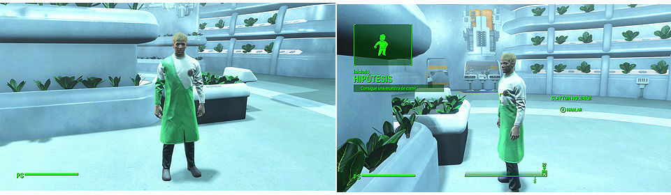 Para iniciar esta misión tenemos que hablar con el doctor Clayton Holdren en Biociencias, nos pide que le consigamos una muestra de carne de Supermutante.