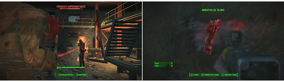 Nos dirigimos a la ubicación indicada, en este caso "Fábrica d Wilson Atomatoys". La zona esta llena de Supermutantes y son bastante peligrosos, además de incursores también hay alguno Legendario, aunque nosotros tenemos que centrarnos en el que se marca como objetivo "Primado Supermutante". Cuando le matemos podemos recoger de sus restos una muestra de tejido.