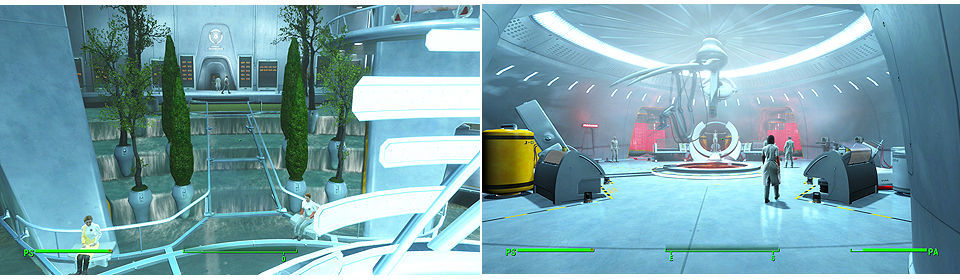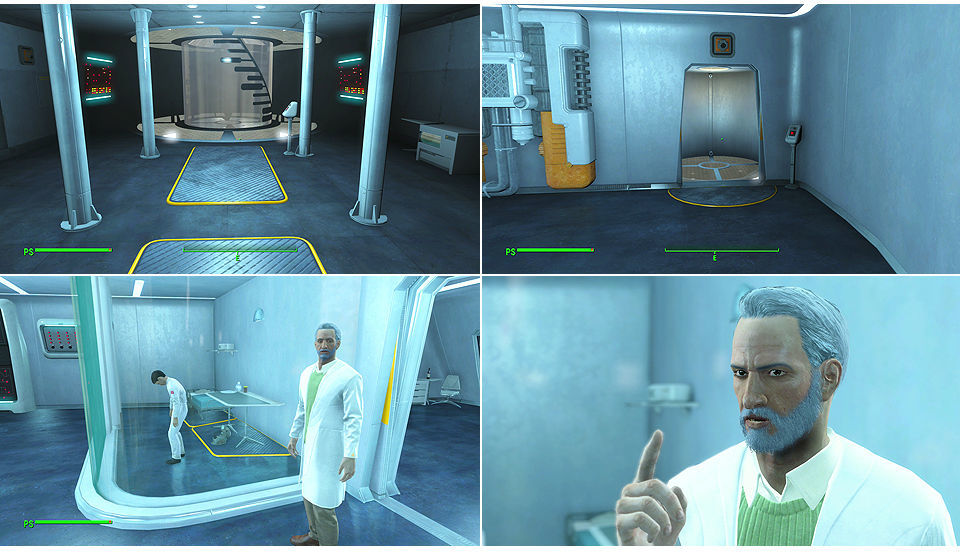 Una vez estemos dentro del Instituto, avanzamos hasta el ascensor (es el único sitio por el que podemos ir), al bajar avanzamos por los pasillos hasta otro ascensor, donde llegaremos a una sala donde veremos a Shaun a través de un cristal. Tras una breve charla aparece una persona conocida como "Padre", el líder del Instituto.