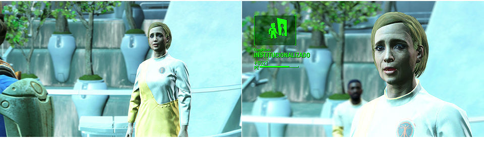 - En el vestíbulo principal, tenemos que encontrar a Allie Filmore, la ingeniera jefe del Instituto. Si no la vemos a simple vista lo mejor es hacer pasar el tiempo, ya que hay veces que podemos estar un buen rato dando vueltas y no verla. Una vez hablemos con ella termina la misión y recibimos la misión del Instituto "Retención de Synths".
