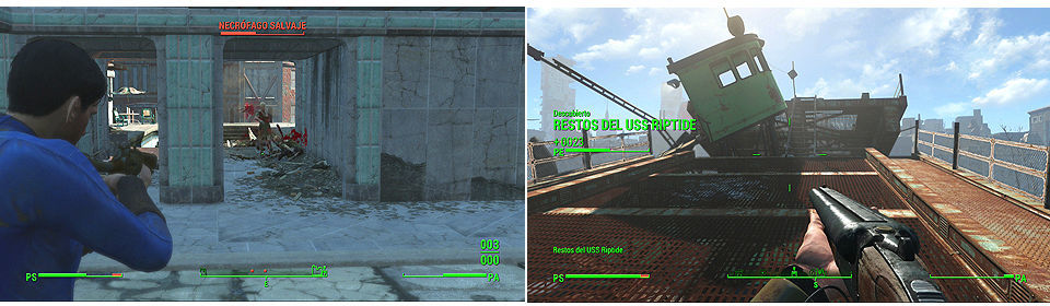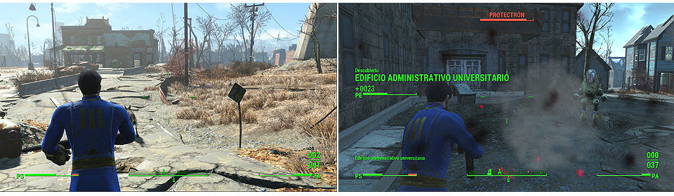 De hecho investigando esta zona descubrimos nuevas ubicaciones y aumentamos nuestros puntos de experiencia, así como misiones secundarias, pero como decimos mucho cuidado al atravesarla, el perro y los items de curación nos vienen muy bien, conviene estar atentos para no cruzarnos con grupos de enemigos, cuando lleguemos a un puente medio derruido y lo atravesemos llegaremos a Diamond City.