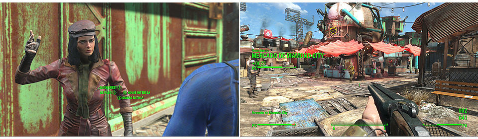 Cuando lleguemos a la zona y hablemos con el vigilante de la puerta encontramos a una chica llamada Piper, hablando con ella podremos entrar dentro del mercado de Diamond City para recabar información sobre Shaun.