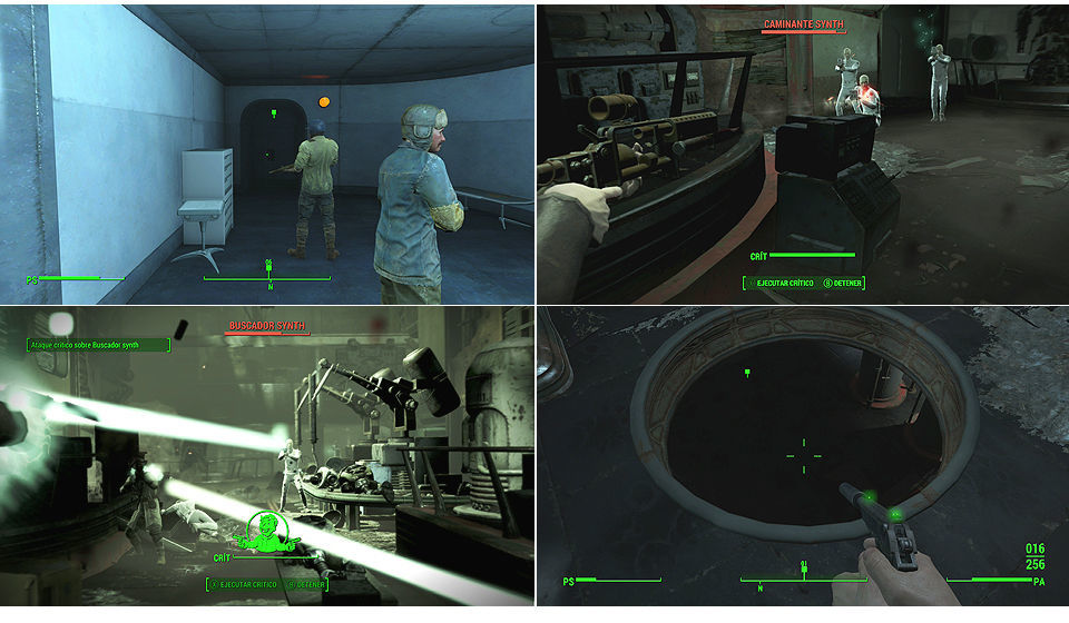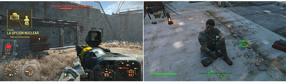 Aquí encontraremos una resistencia Synth muy elevada, mucho ojo a nuestra salud, nos vamos a encontrar Cazasynths que usan Stealth Boys (camuflaje óptico), Asaltantes Synths y alguno Legendario (XPN-20A). Tenemos que combatir contra ellos y eliminar a los suficientes hasta que Sturges nos hable y nos mande usar el terminal, cuidado con matar a los científicos civiles que no son hostiles.