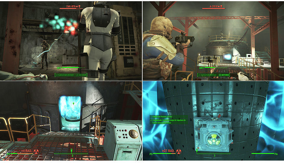 La entrada de Sistemas Avanzados está fuertemente protegida pero gracias al código de Padre habrá algunos desactivados. Eliminamos a los Synth y entramos, dentro también tenemos resistencia, los eliminamos y cruzamos la puerta hacia el reactor.