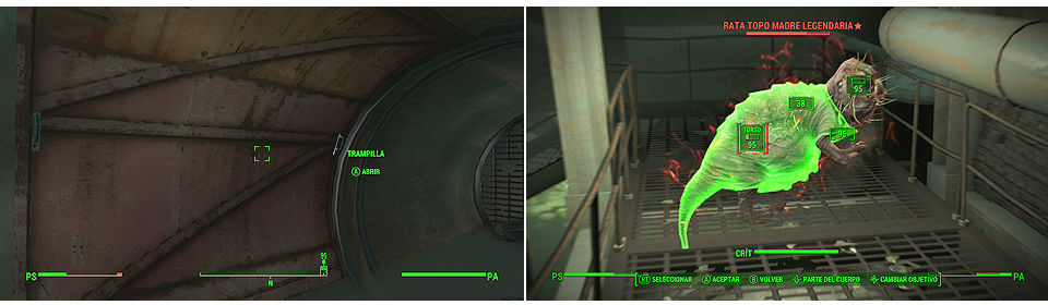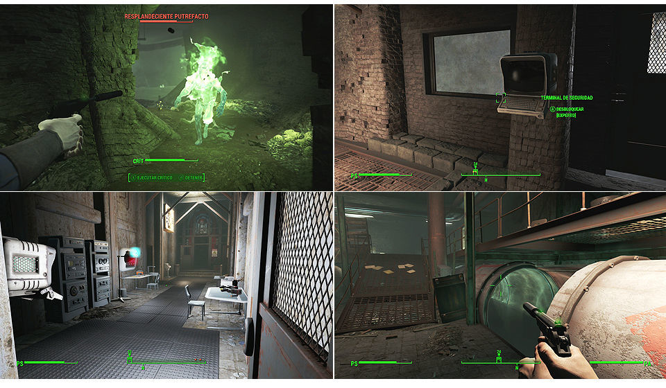 Cuidado en este punto que son bastante peligrosos, también hay uno Resplandeciente y por esta zona tras los Necrógafos hay torretas lásers por el techo. Llegamos hasta un Terminal [Experto] que hay que desbloquear para poder avanzar o seguimos hasta el final para entrar por un agujero de la pared (pero también hay otra torreta láser y nos costará mas munición pasar por aquí por los enemigos Synth que nos esperan al otro lado).
