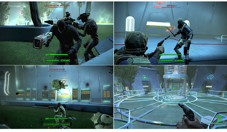 Una vez entremos en el Instituto y lleguemos al repetidor por donde entramos, bajamos y accedemos por la puerta de Robótica Antigua. Aquí nos esperan bastantes contingentes Synths, menos mal que nos acompañan efectivos de los MinuteMen. Cuidado también con las torretas láser, bajamos hasta llegar a una trampilla circular en el suelo que nos lleva hasta la sección de Biociencias, aquí salimos rápidamente al vestíbulo principal.