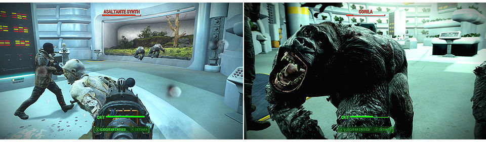 Una vez que lleguemos a Biociencias nos estarán esperando varios Synths y además sueltan a los Gorilas experimentales. También tenemos torretas en el techo, eliminamos a todos los enemigos y continuamos hasta el vestíbulo principal del Instituto.