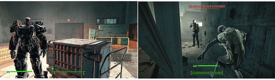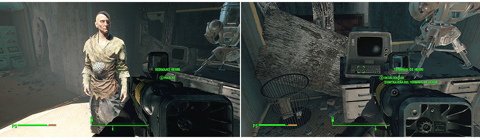 Continuamos avanzando hasta otra bifurcación, por la izquierda tenemos una sala inundada con Necrófagos, por la derecha podemos seguir bajando hasta llegar a una zona donde nos encontramos con el Hermano Henri, un adepto del átomo. Hablando con el nos dará la contraseña para entrar al arsenal usando el terminal que tiene justo detrás para abrir las puertas.