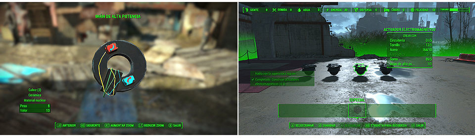 Necesitamos encontrar un Imán de alta potencia para poder construir los actuadores electromagnéticos, podemos encontrarlos en la ubicación aleatoria que nos den en alguno de los hospitales de la Commonwealth. Aun así también podremos comprarlos en alguna tienda (Myrna en Diamond City), cuando lo consigamos volvemos al aeropuerto y construimos cuatro actuadores electromagnéticos, necesita las siguiente piezas cada uno.