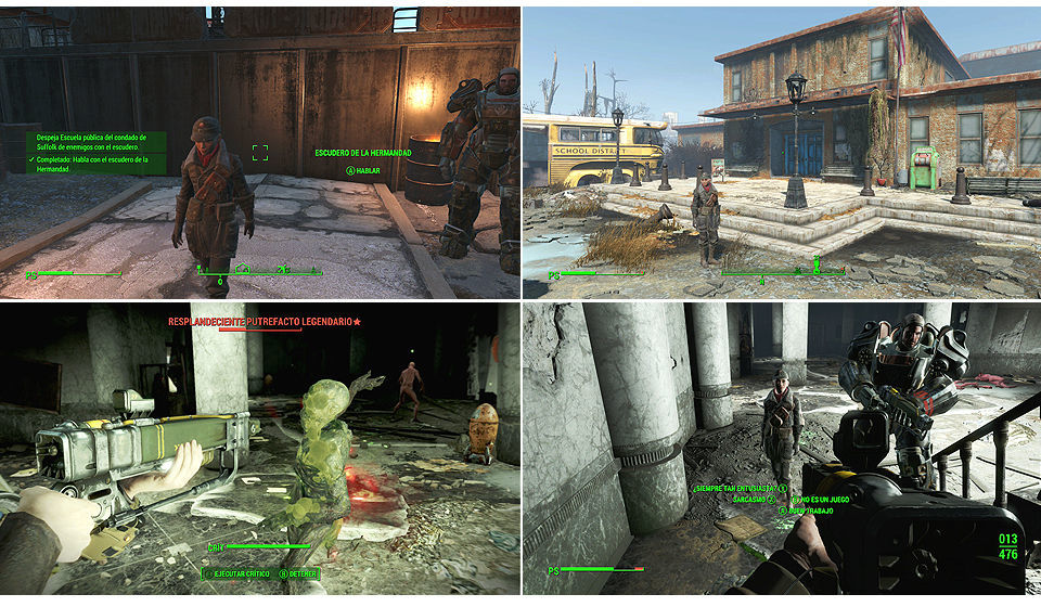 Nos dirigimos al aeropuerto de Boston a hablar con el escudero, la misión es ir a una ubicación aleatoria y eliminar a todos los enemigos. En este caso Escuela pública del condado de Suffolk. Nos ponemos manos a la obra, limpiamos la ubicación de enemigos (normalmente Necrófagos y Supermutantes), siempre alguno es Legendario y atentos a que no maten al escudero.