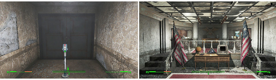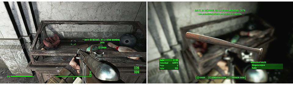 Dentro encontraremos un mecanismo para abrir la sala de los tesoros y por fin acceder, tenemos bastantes objetos para recoger, aunque no son tampoco gran cosa, en la vitrina de la derecha tenemos el "Bate de Béisbol de la serie mundial 2076" que podemos vender por un buen precio a Moe Cronin el tendero de Diamond City por un buen precio y además podemos pedirle más, cogemos todo lo que nos interese y finalizamos el objetivo.