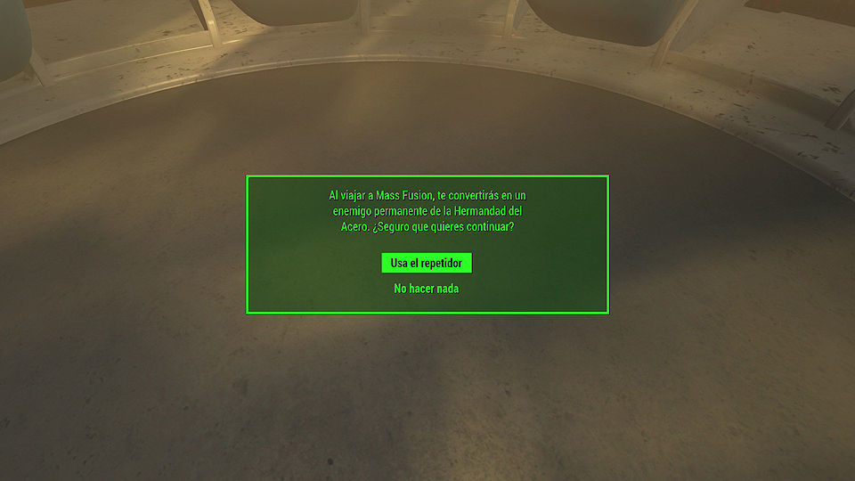 **Al viajar a Mass Fusion, nos convertiremos en un enemigo permanente de la Hermandad del Acero**