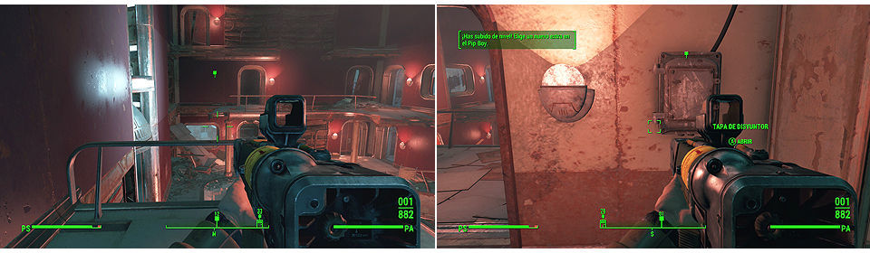 Una vez acabemos con los enemigos, si queremos completar este objetivo opcional tenemos que ir por la sala a la derecha del ascensor según bajamos y subir por el techo roto hasta el piso de arriba. Avanzar hasta la sala de la izquierda del todo y activar el disyuntor en el panel que hay sobre la pared.