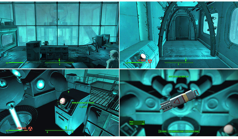 Tras abrirnos paso luchando a través de Mass Fusion llegamos al nivel del reactor, avanzamos por la puerta de la derecha llegando hasta la zona del reactor. Por la izquierda tenemos una puerta con un botón para entrar en el reactor, mucho cuidado con la radiación en este punto, sube muy rápidamente. Trajes antirradiación o una buena ración de Rad-X, Rad-Aways y Estimulantes, vamos lo más rápido posible a desbloquear el reactor y conseguir el Agitador de Berilio.