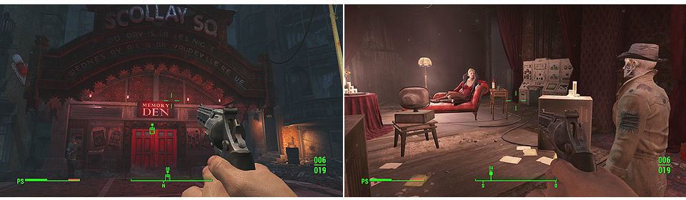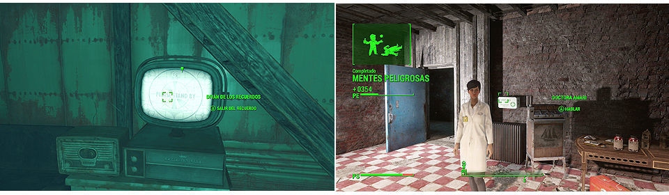 Cuando lleguemos a Goodneighbor, un sitio similar a Diamond City, con tiendas y poblado por la gente discriminada (su alcalde es un necrófago), tenemos que ir a Memory Den, hablar con Irma, que nos dirá que la doctora esta abajo.
