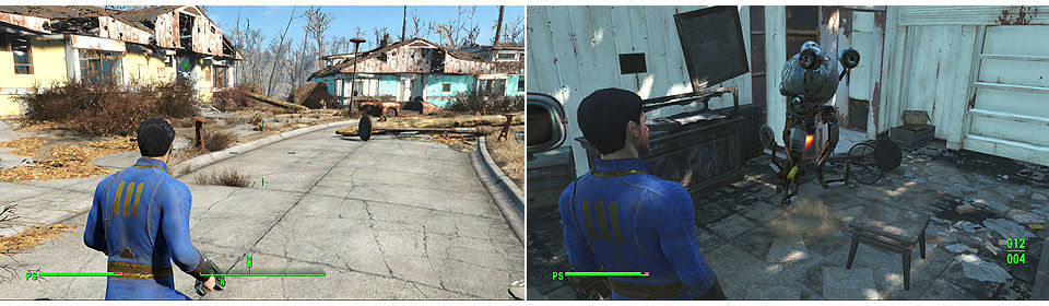 Nos ponemos manos a la obra junto a Codsworth para registrar el barrio, entra en 2 casas donde hay Tochomoscas que elimina fácilmente, tras la segunda si vamos a hablar con él nos da el siguiente objetivo, conviene hacer un registro exhaustivo del barrio, cuando queramos hablamos con Codsworth sobre Concord.
