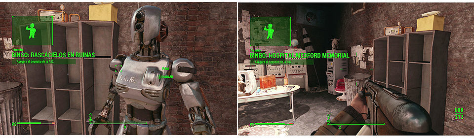 La localización que nos mandan limpiar es aleatoria, siempre una ubicación morada por enemigos, en este caso Sala de Parkview, en la que hay Saqueadores y Supermutantes.