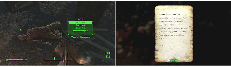 En este caso en "Monsignor Plaza", lleno de Saqueadores, eliminamos a todos los enemigos y en la ubicación encontraremos al agente Mirlo tirado en el suelo. En su cadáver podemos encontrar una nota para leer, hay que volver a cuartel a informar al Doctor Carrington.