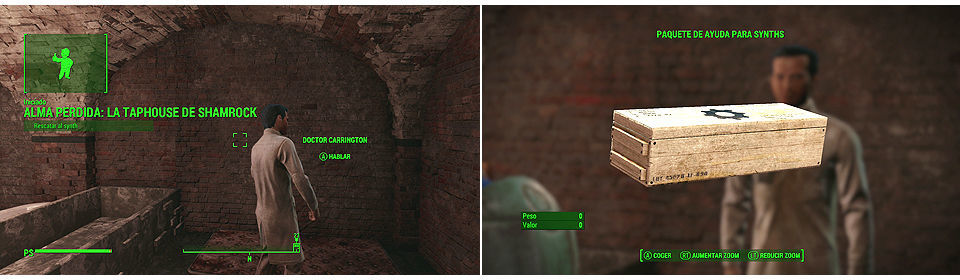Esta misión la obtenemos hablando con el Doctor Carrington, nos dice que no todos los Synths que fueron teletransportados fuera del Instituto están a salvo y nos da un Paquete de Ayuda para Synths.
