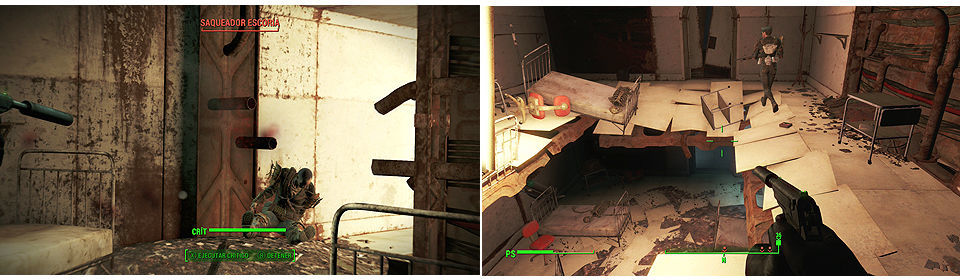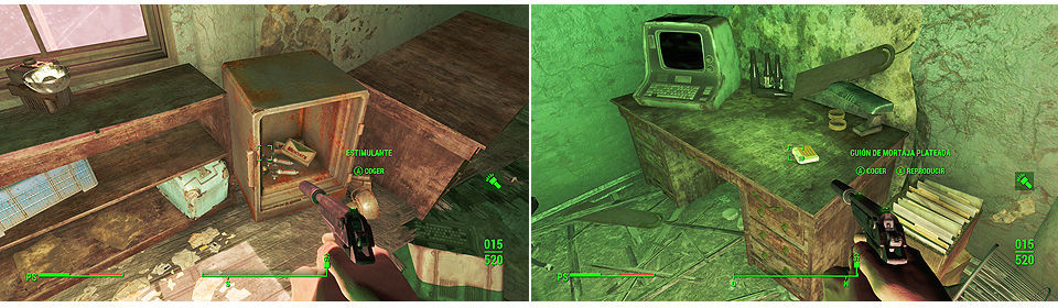 Avanzamos por el único camino que podemos, por donde están los Saqueadores y la torreta llegando a una sala con un agujero en el suelo. Nos tiramos, cuidado que al avanzar nos encontramos con dos torretas y un Saqueador Superviviente de frente, los eliminamos. La puerta de la izquierda se puede desbloquear [Avanzado] dentro tenemos un botiquín y drogas sobre la mesa.