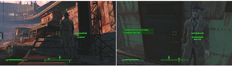 Cuando queramos continuar con las misiones principales nos dirigimos a Diamond City a hablar con Nick, al entrar vemos a Ellie con Nick, tras agradecernos el rescate de Nick, nos ponemos manos a la obra con nuestro caso, hay que sentarse y contarle a Nick todo lo relacionado con el secuestro de Shaun, tenemos que ir siguiendo todos los diálogos hasta que salga el nombre de Kellog, un hombre del que Nick ya tiene pistas de otro caso, cuando salga su nombre, Nick nos pide que le sigamos.