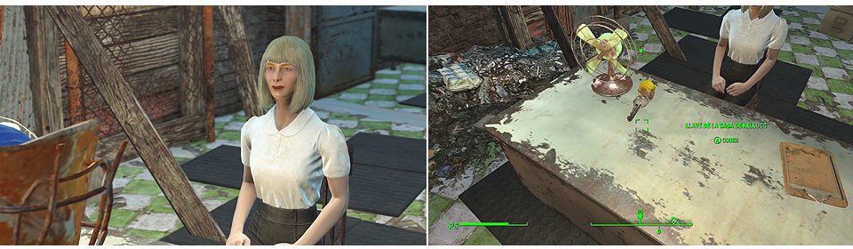 También otra manera de conseguirla, es usar el viaje rápido a Diamond City cuando sea de noche y en la oficina veremos al alcalde dormido, dentro de una caja fuerte la encontramos. Una vez tengamos la llave por carisma, soborno o encontrándola nos dirigimos a casa de Kellogg para registrarla y encontrar más pruebas.