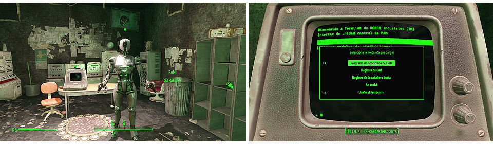 Por otro lado en esta charla esta la Supervisora Ingram y nos pide que reprogramemos al robot del Ferrocarril conocido como PAM para que venga a bordo del Prydwen. Eso o destruirlo, nos da la holocinta "Programa de descifrado de PAM".