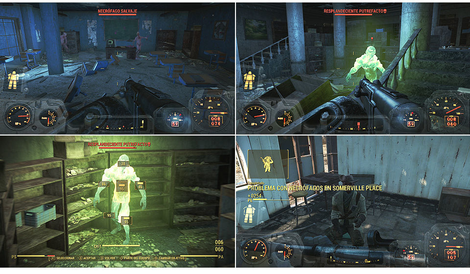 Vamos a la localización también aleatoria (en nuestro caso Escuela pública del condado de Suffolk) y eliminamos a todos los Necrófagos, hay uno como jefe irradiado.