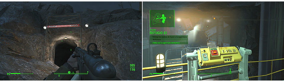 Al llegar a la entrada veremos un comunicador, una vez que pulsemos el botón, tendremos una charla con el agente Edwards y con la Supervisora McNamara, para dejarnos entrar en el Refugio nos pide que le entreguemos 3 núcleos de fusión.