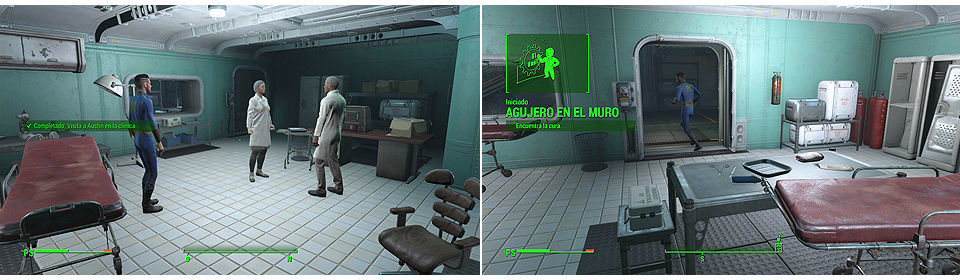 *Tras completar esta misión, ya podemos deambular por el Refugio 81, para que nos salga la siguiente misión "Agujero en el Muro" tenemos que o hacer misiones del Refugio 81 (ver localización Refugio 81) y salir y volver hasta que nos digan que vayamos a visitar a Austin en la clínica.