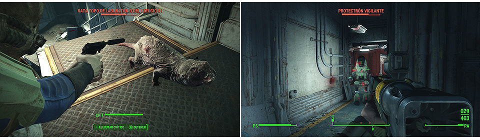 Seguimos a Bobby hacia la zona del reactor y accedemos a la parte secreta del Refugio 81, la zona esta destruida, subimos las escaleras y nos ataca una rata topo, continuamos hacia el objetivo. Entrando por el agujero en la pared de arriba, cuidado que nos vamos a encontrar 2 torretas ametralladoras en el techo y un Protectrón Vigilante.