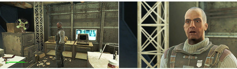 El caballero Cade es el oficial médico de la Hermandad del Acero, nos hará un reconocimiento médico a base de preguntas.