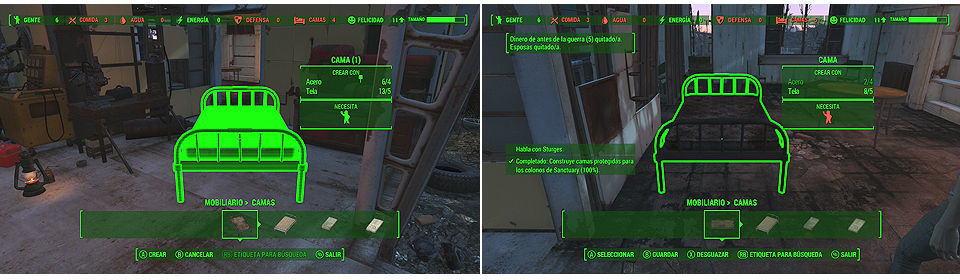 Esta misión nos sirve para aprender a gestionar un asentamiento y usar el Taller para construir cosas, importante saber que desde el menú del Taller si andamos los objetos que se marquen en amarillo se pueden desguazar para conseguir materiales.