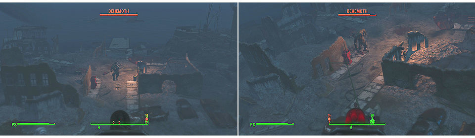 Una vez subamos al Vertibird, nos dirigimos hacia Fort Strong, al llegar a la zona veremos un Behemoth, un Supermutante gigante cubriendo la zona. Tenemos que matarle usando la Ametralladora del Vertibird, también tenemos bastantes Supermutantes por la zona, si podemos acabar también con ellos mejor.