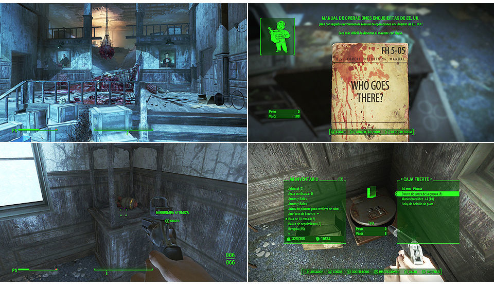 Entramos en el edificio, justo al entrar podemos dirigirnos hacia la derecha o la izquierda. Por la derecha tenemos 2 puertas para desbloquear [Principiante], en la segunda encontramos el terminal del general Brock. Al lado en la mesa un "Manual de Operaciones Encubiertas de EE.UU" también tenemos una MiniBomba Atómica y un Baúl con munición, hay una caja fuerte en el suelo en la esquina, podemos abrirla con la llave de Fort Strong que encontramos en el escritorio.