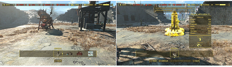 Una vez que todo este listo y probado volvemos a hablar con Preston Garvey, ahora podemos construir Artillería en cualquier asentamiento.