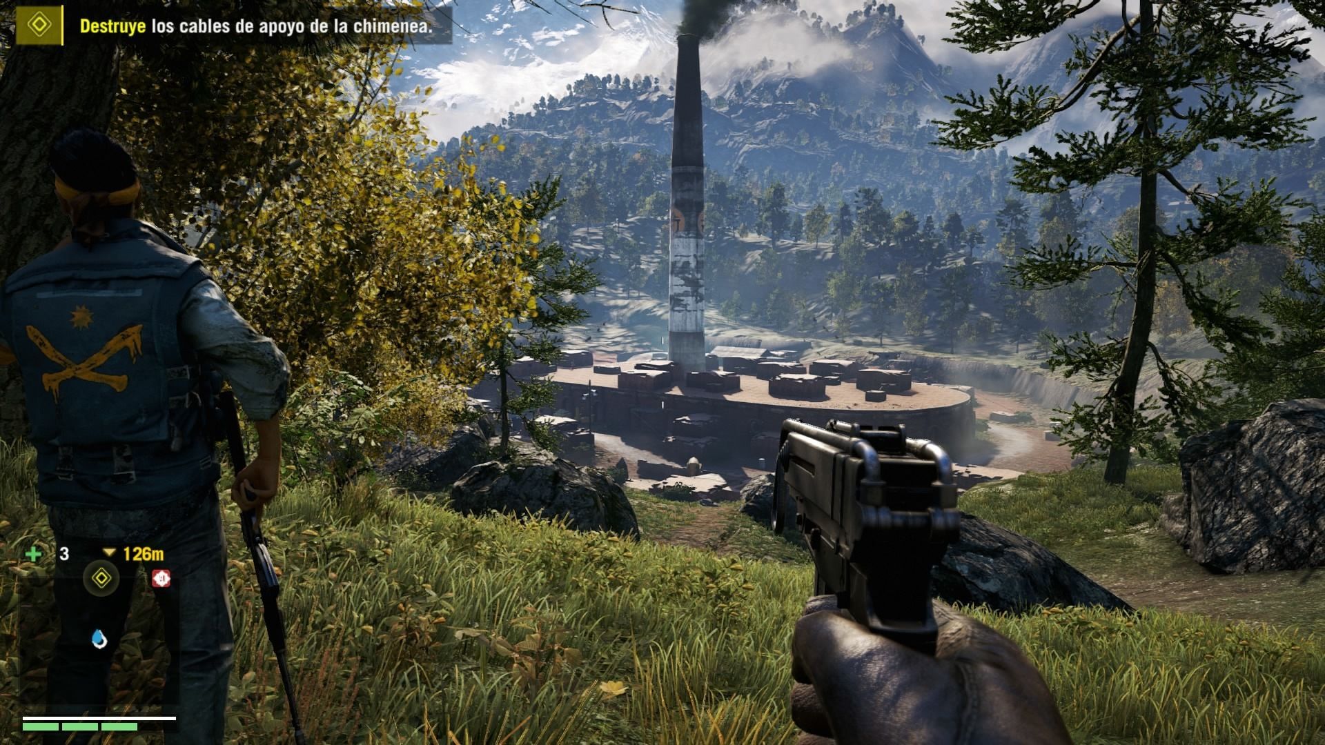 Después de romper todos los anclajes, dirígete a la base de la torre y túmbala. La segunda parte del plan es colocar explosivos en su interior enfrentándote a unos pocos enemigos en su interior. Ve a los puntos marcados, coloca las bombas, sal y pulsa el botón, habrás acabado con este negocio de la droga.