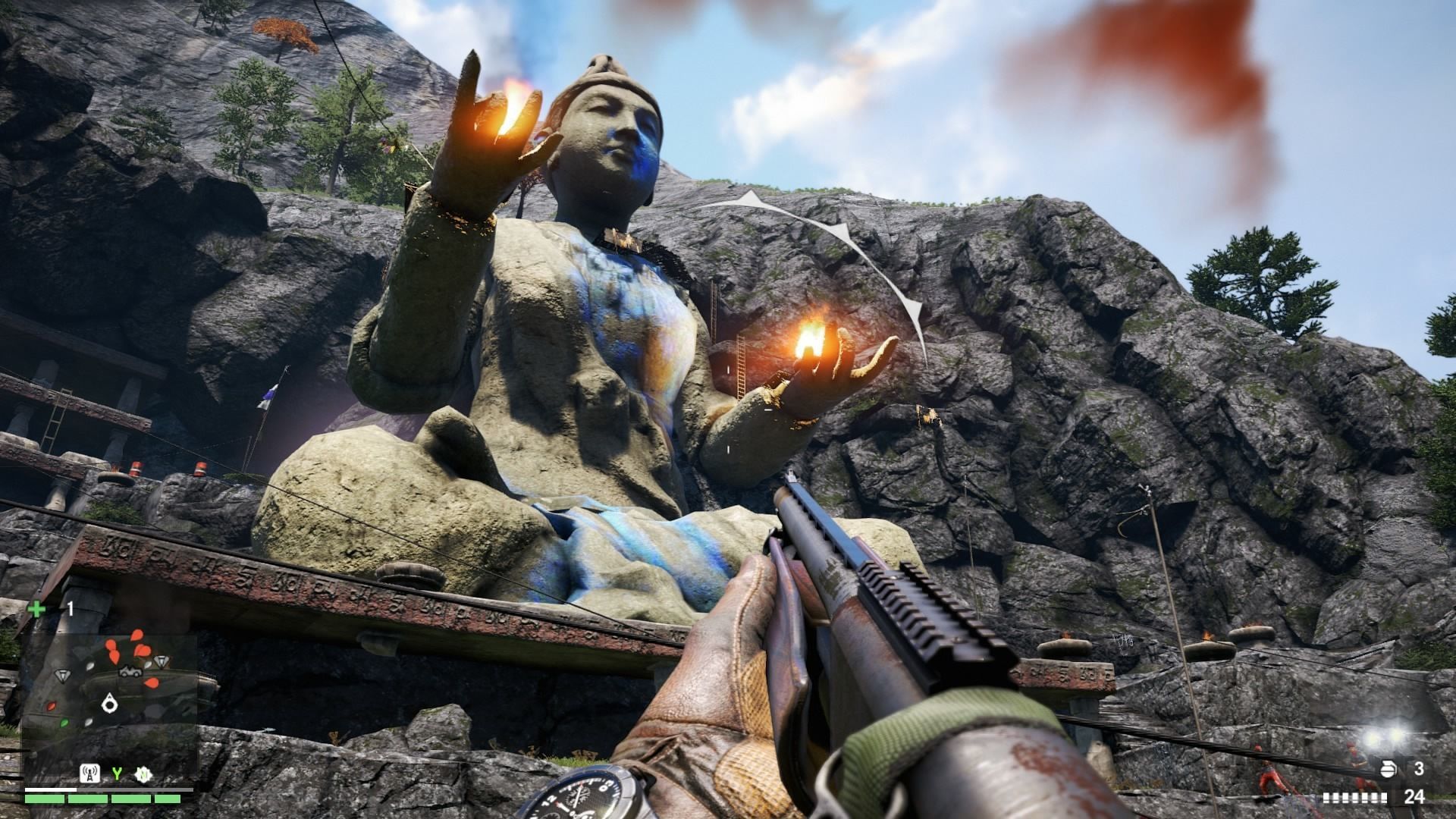 El ejército de Pagan se dedica a dinamitar las obras de Kyrat, y eso incluye unas enromes –y bonitas- estatuas. Desplázate al lugar para impedirlo.