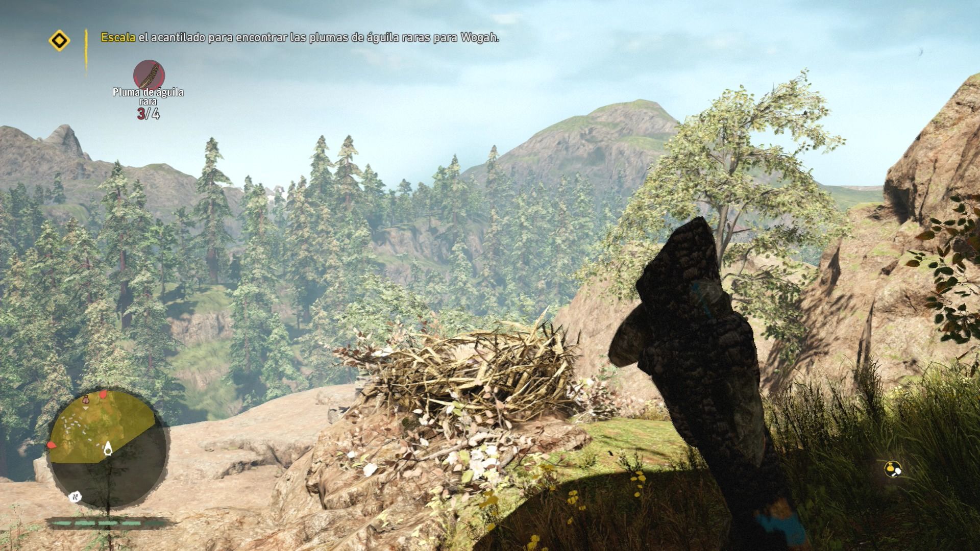 Para encontrarlas debes escalar por la montaña en la que transcurre la misión e incluso ir usando el gancho para llegar a las partes más altas. Según vayas subiendo por la montaña verás algunos nidos en los que encontrarás las cuatro plumas de la misión. La última la encontrarás en la parte más alta de la montaña, el nido lo verás encima de unas rocas en la parte central.