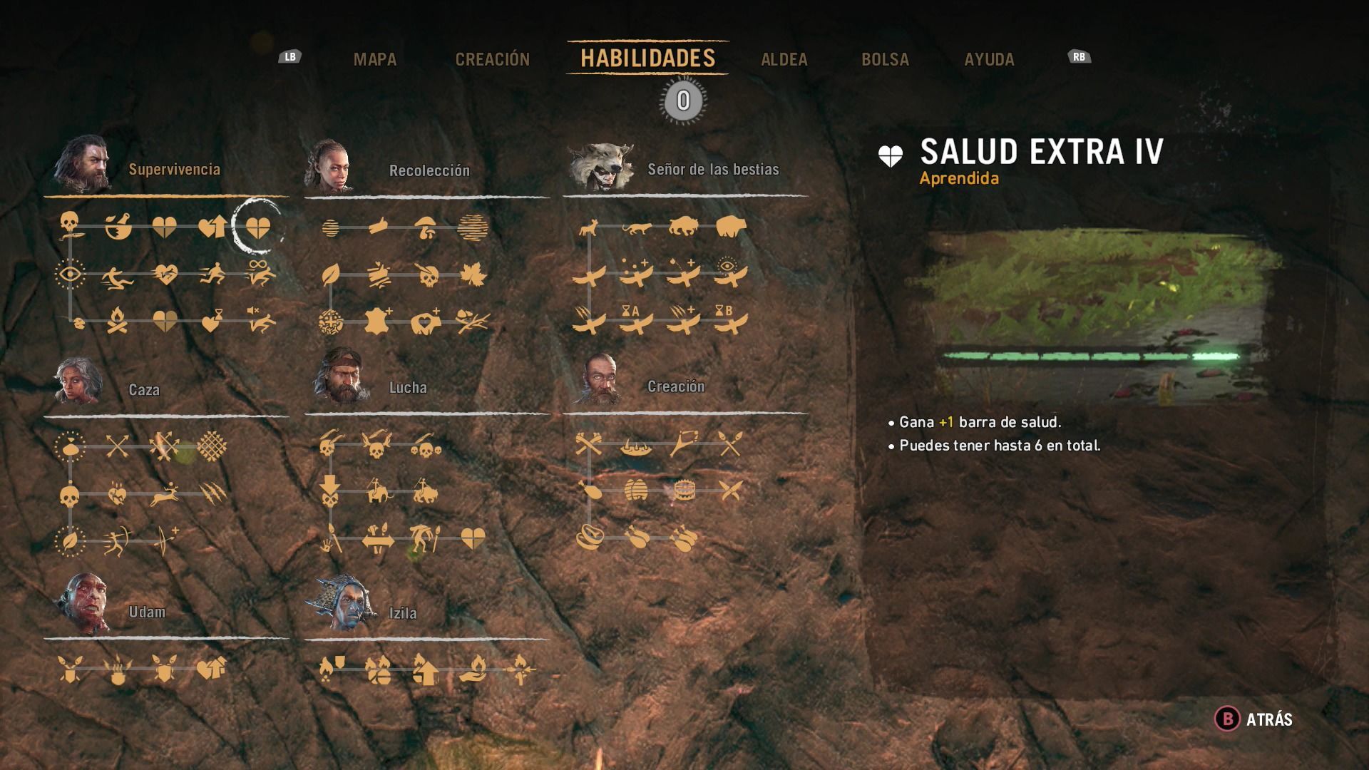 Céntrate primero en las que te mejoran la vida y en las de recolección para conseguir más materiales cada vez que examines cualquier elemento.