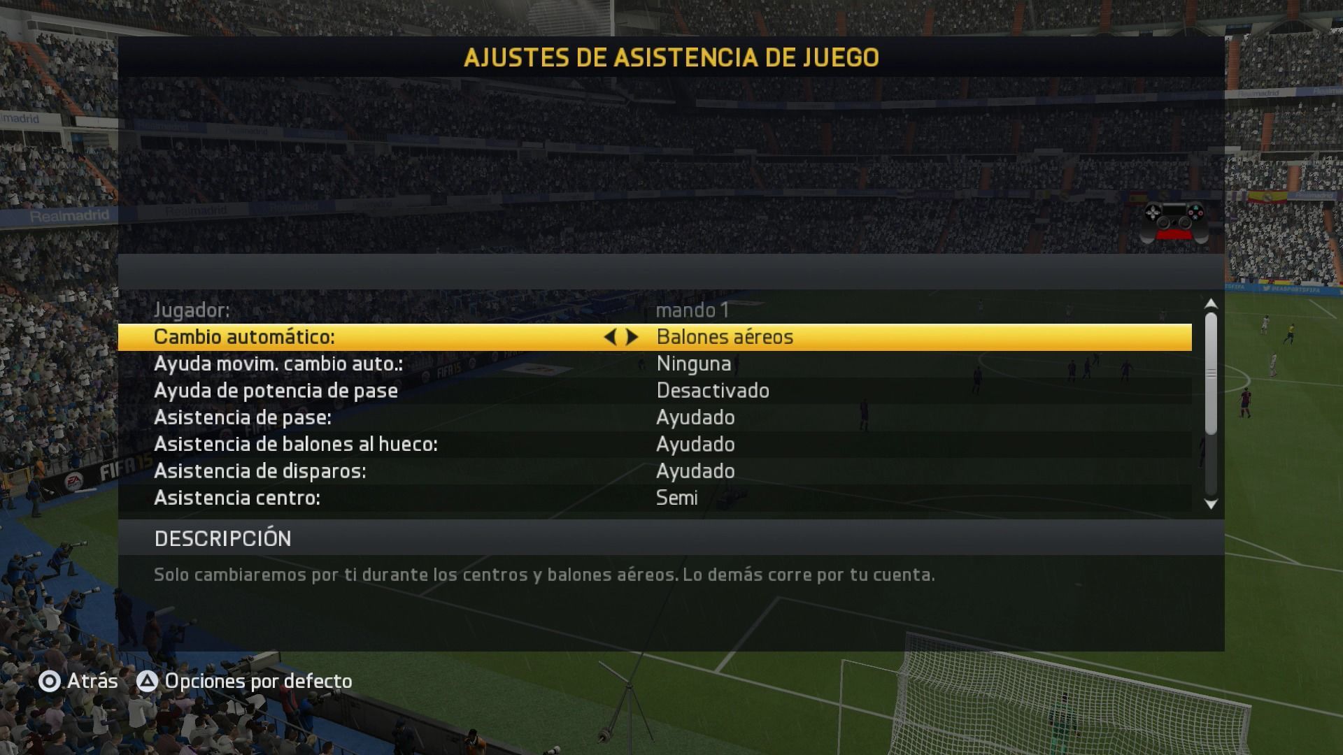 Fuera de juego = cruceta arriba, cruceta arriba. Presión equipo = cruceta arriba, cruceta abajo. Cambiar bandas = cruceta arriba, cruceta izquierda. Defensa central ataca = cruceta arriba, cruceta derecha.Defensa