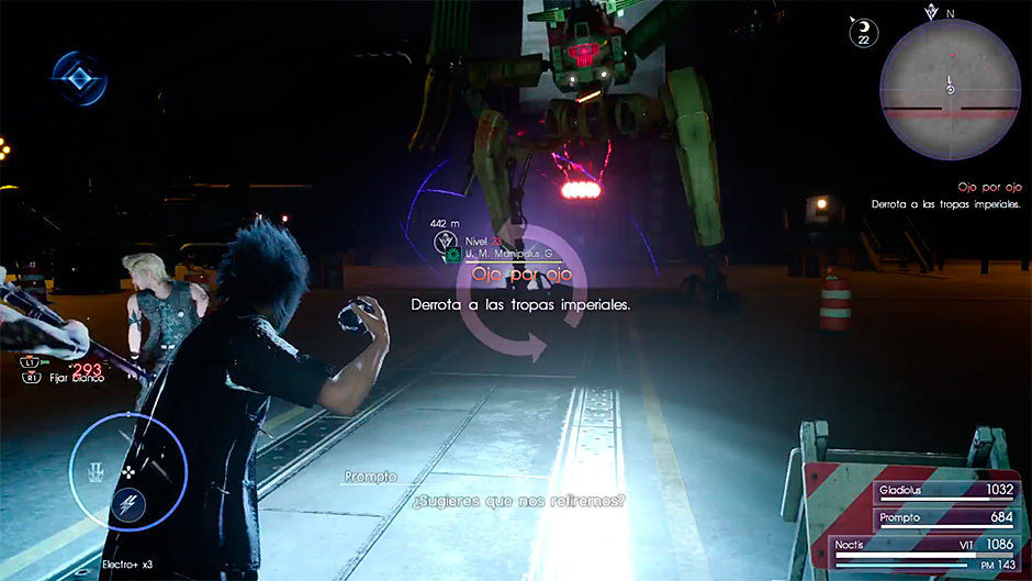 Ten en cuenta que también aparecerán más soldados corrientes, no muy peligrosos pero sí molestos porque van dañando al grupo y dificultan localizar a Arena. Acaba con ellos para centrar a todos los personajes en la jefa. Después de intercambiar unos espadazos se marchará y podrás continuar tu viaje a Caem, donde te esperan Cid y Cindy.