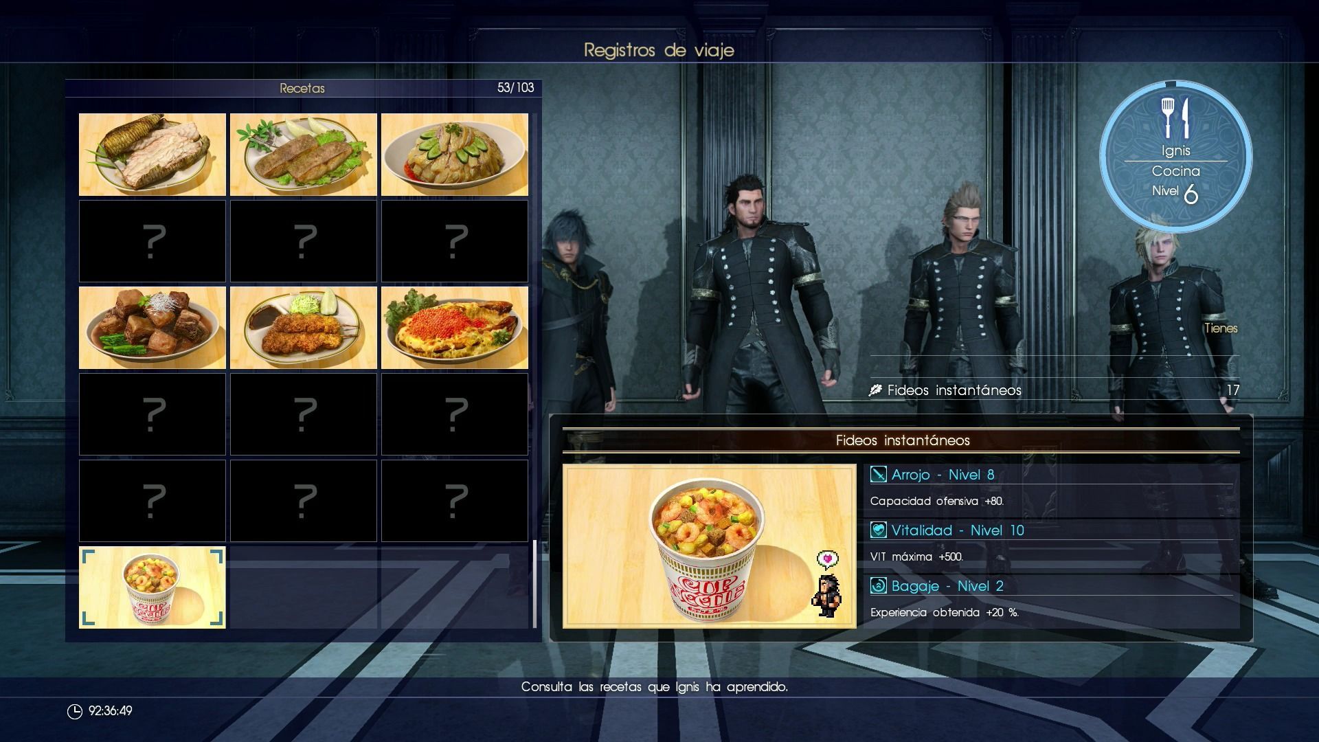 - Comiendo en restaurantes: Cada uno de los restaurantes del juego tiene un par de platos a la venta. Si los compramos conseguiremos los estados beneficiosos que les corresponda pero además Ignis aprenderá a cocinarlos.