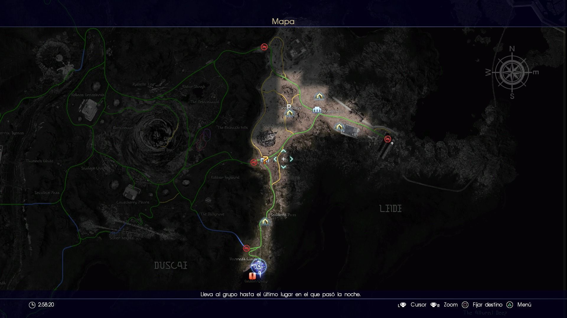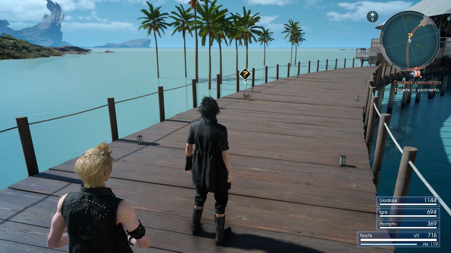Las misiones secundarias vienen marcadas en el mapa de Lucis con una interrogación de color amarillo, no importa si estamos lejos de la zona en la que está la persona que nos ofrece la misión o si incluso aparece en una zona a la que no podemos acceder en el capítulo actual.
