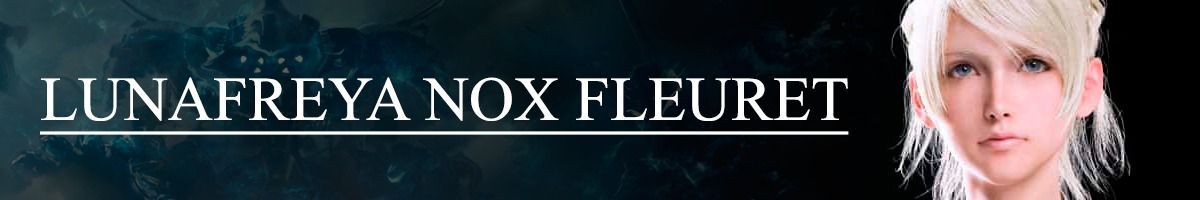 Lunafreya Nox Fleuret es oráculo y sierva de los dioses, sobre quien recae la ardua labor de purificar el mundo. A pesar de que Tenebrae, patria de su noble linaje, fue ocupada por Niflheim, la dama Lunafreya ha sabido granjearse desde niña el respeto y admiración no solo de sus compatriotas, sino de todo el mundo, gracias a su devoción y buen hacer. Guarda con especial cariño los momentos compartidos con Noctis cuando aún eran niños.