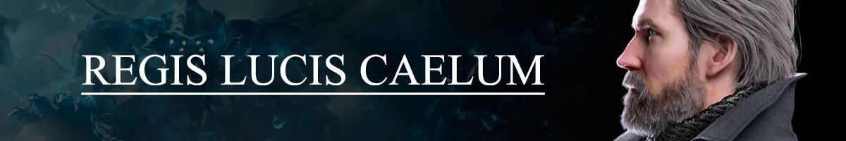 Regis Lucis Caelum es el soberano del reino de Lucis y padre de Noctis, a quien ha criado en solitario. Del rey Regis pende la seguridad de Insomnia, la capital, pues sobre sus hombros se sustenta el deflector mágico que la protege. Tras la violación del alto el fuego por parte del Imperio de Niflheim, los medios se apresuraron en proclamar su fallecimiento –estos acontecimientos se pueden ver en la película Kingsglaive: Final Fantasy XV-.
