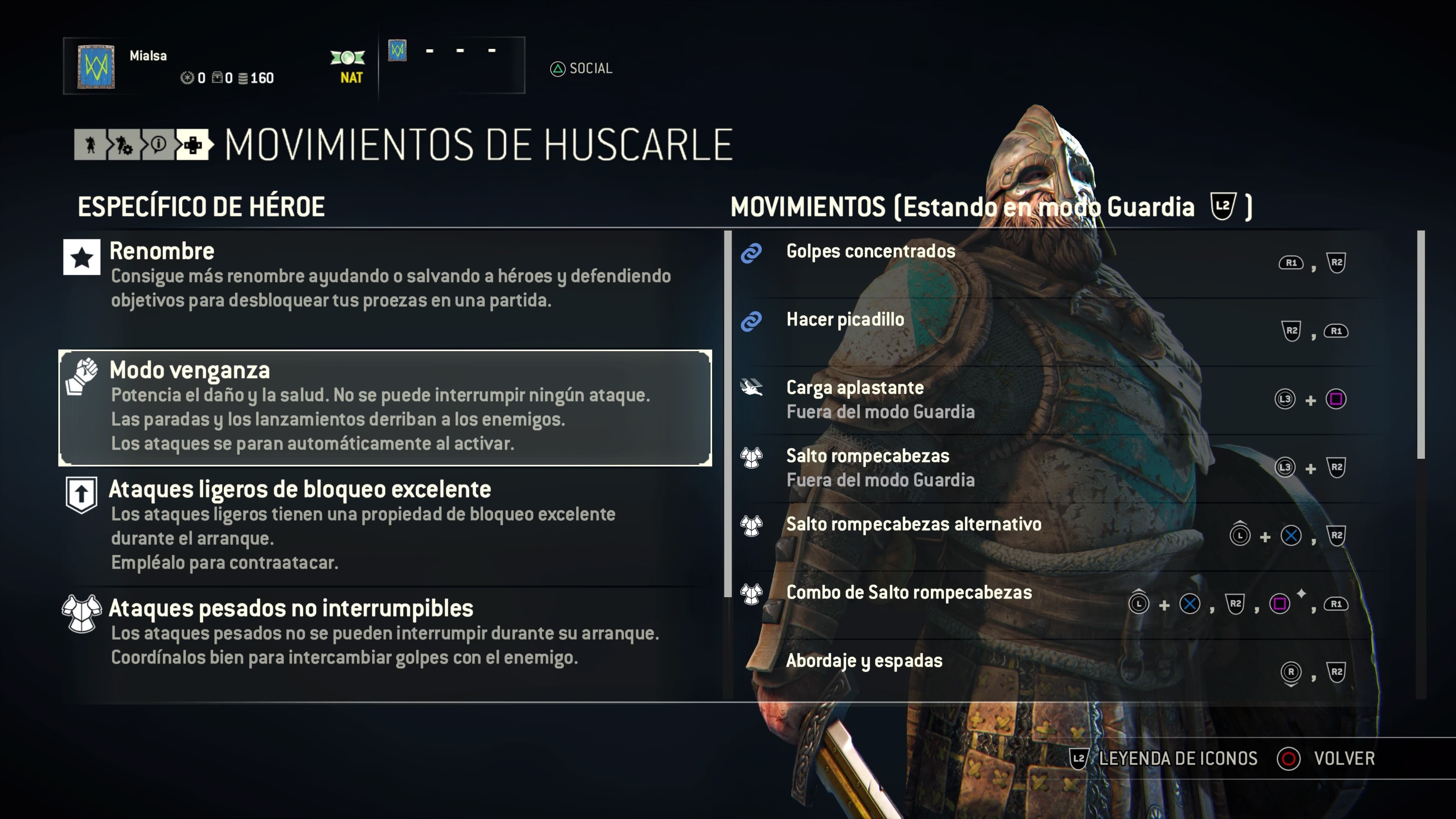 - Carga aplastante (fuera del modo guardia): L3 + Cuadrado